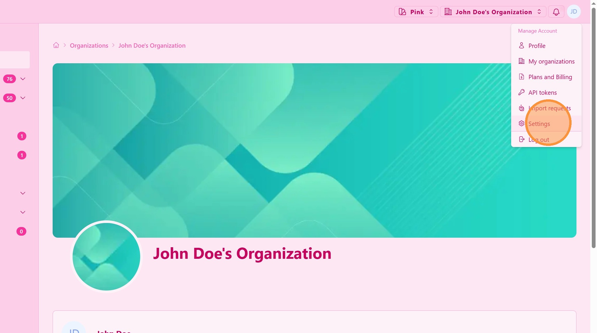 Click on your user profile icon in the top navigation bar and then on Settings.