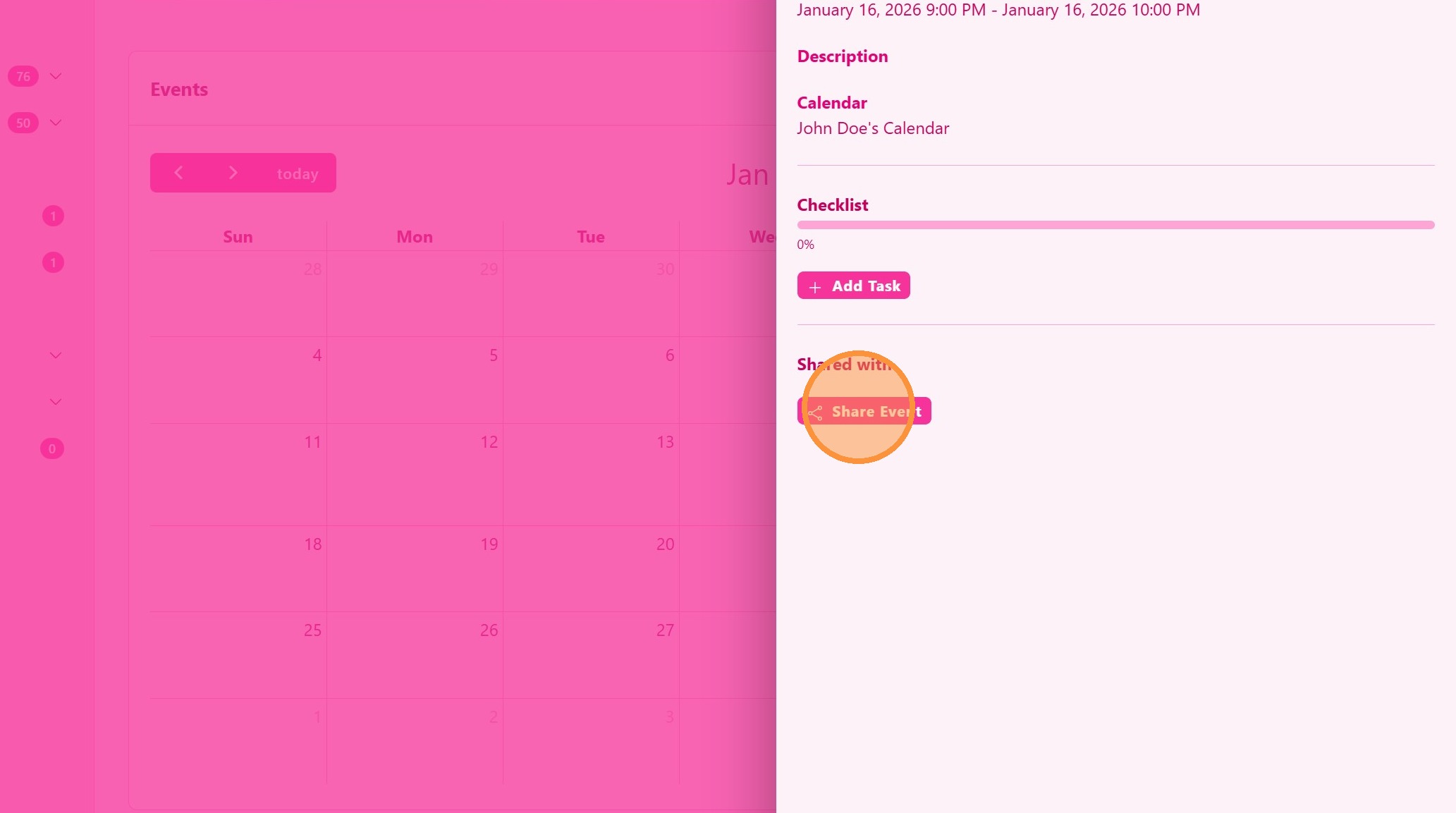 How do I create and share a calendar event?