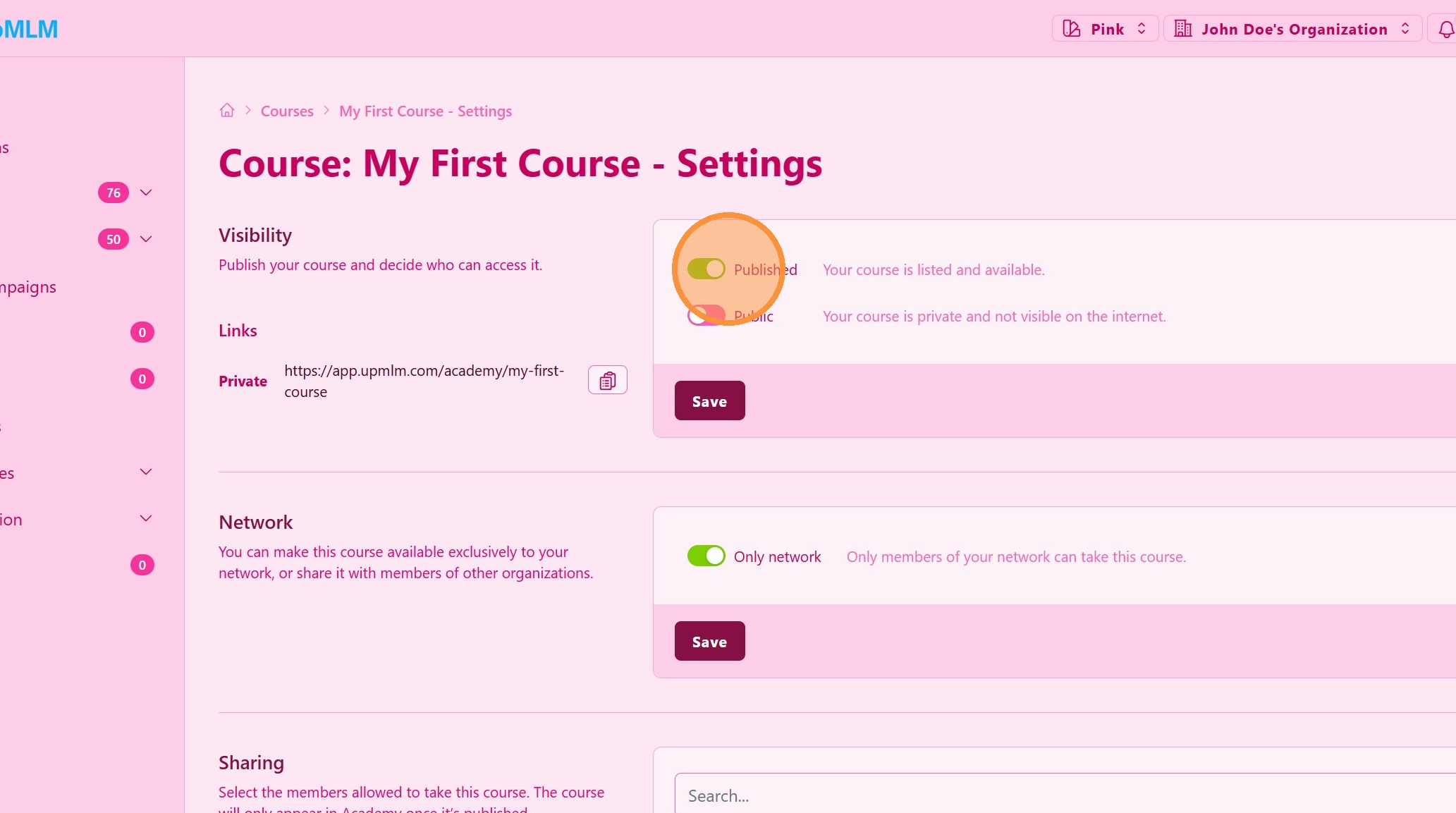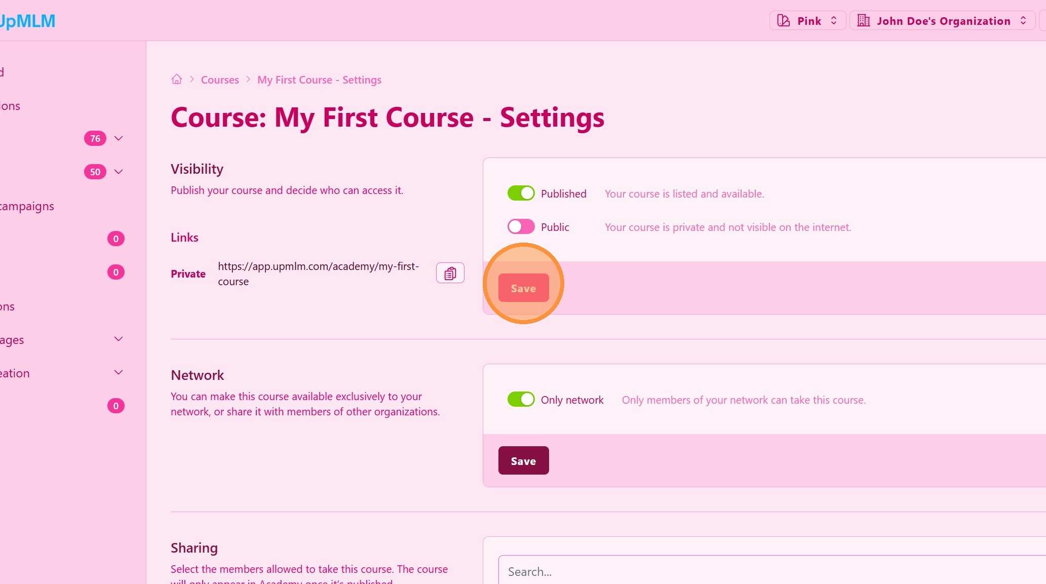 Adjust course visibility. You can make this course visible only for your members or to the world.