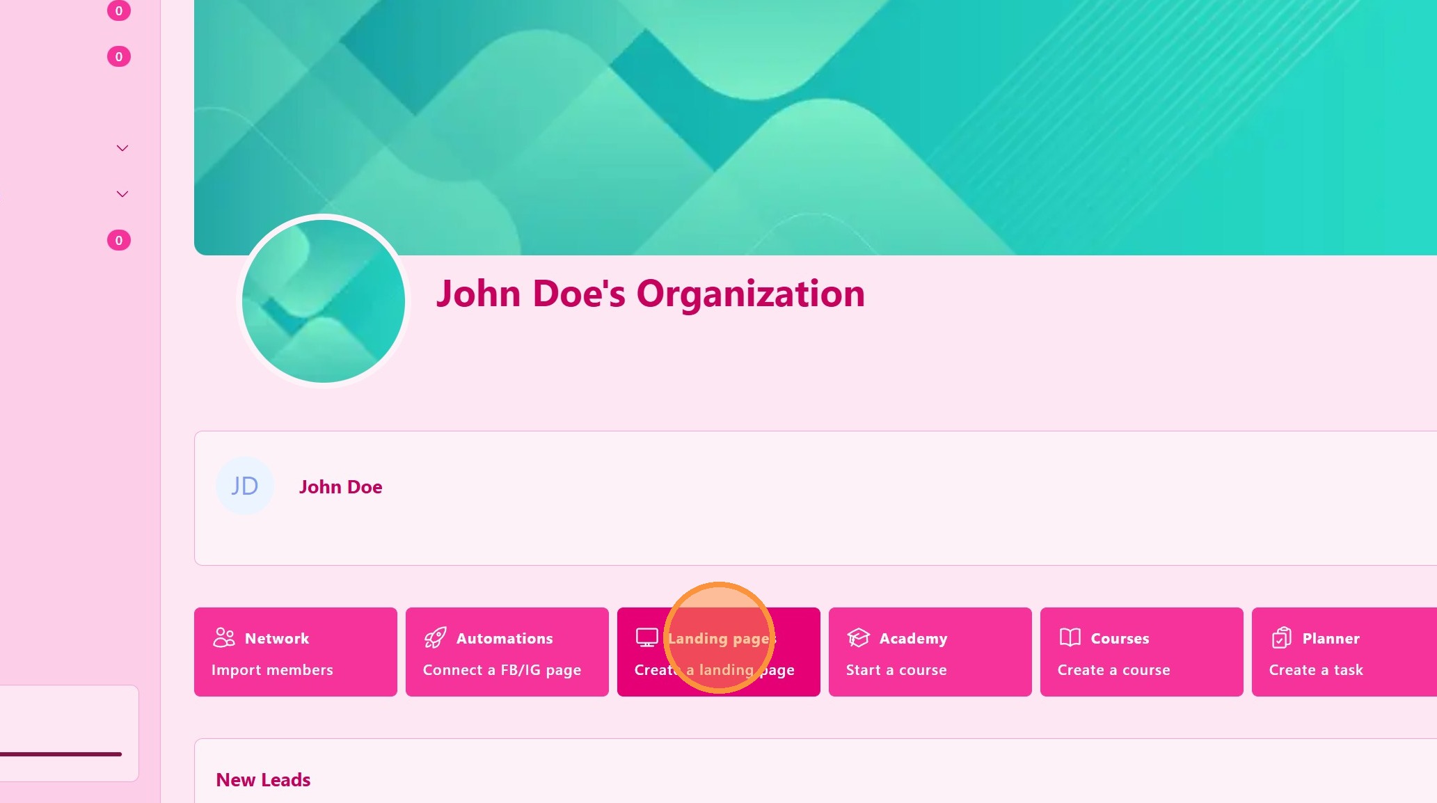 From the main navigation menu, click on Landing Pages.