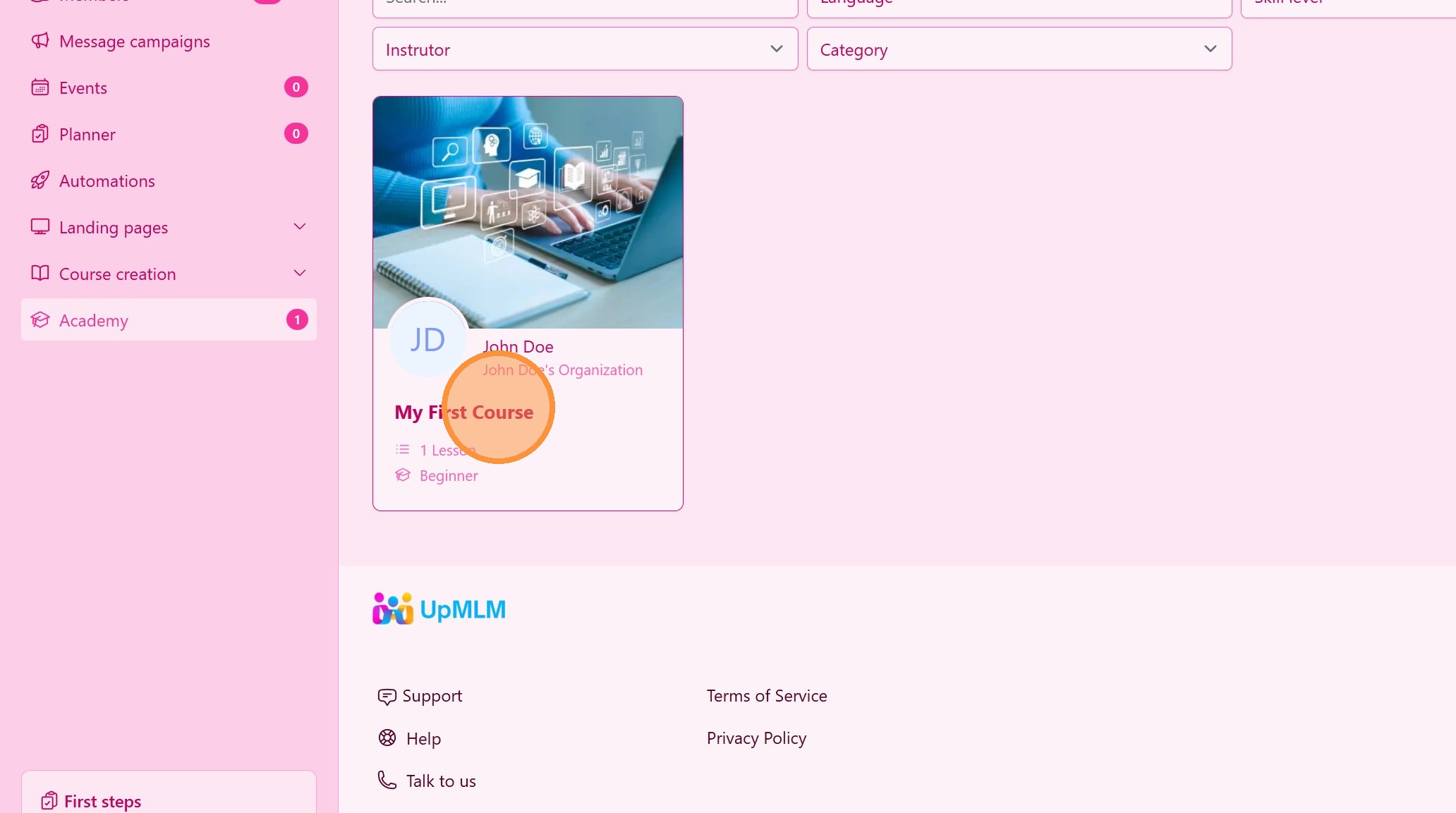 In this tutorial, you will learn how to start your first course in UpMLM. By the end of this guide, you will be able to access course content, begin lessons, and track your learning progress on the platform.