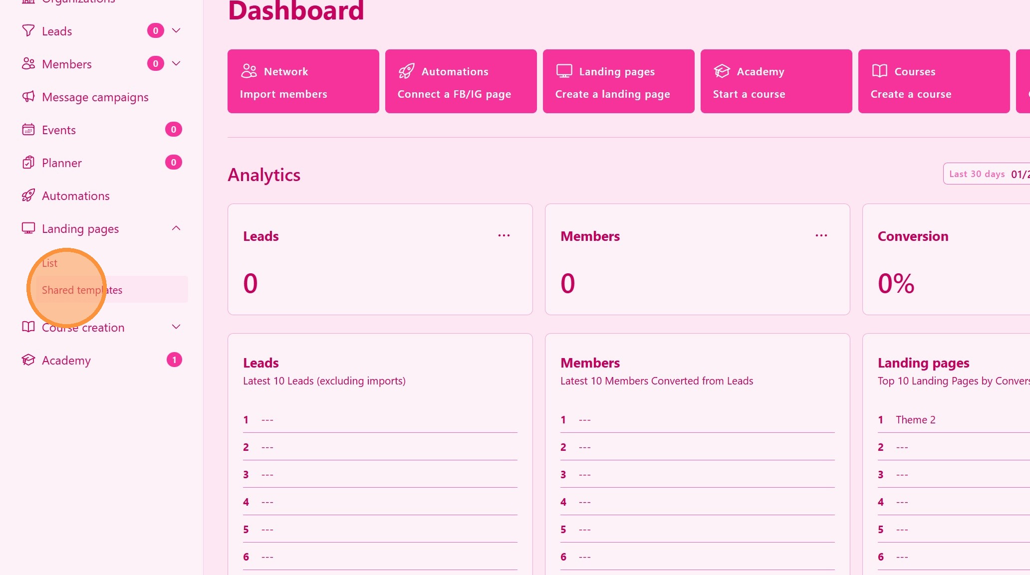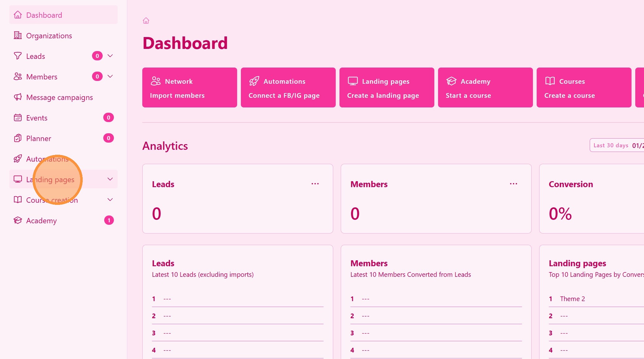 From the main navigation menu, click on Landing Pages.