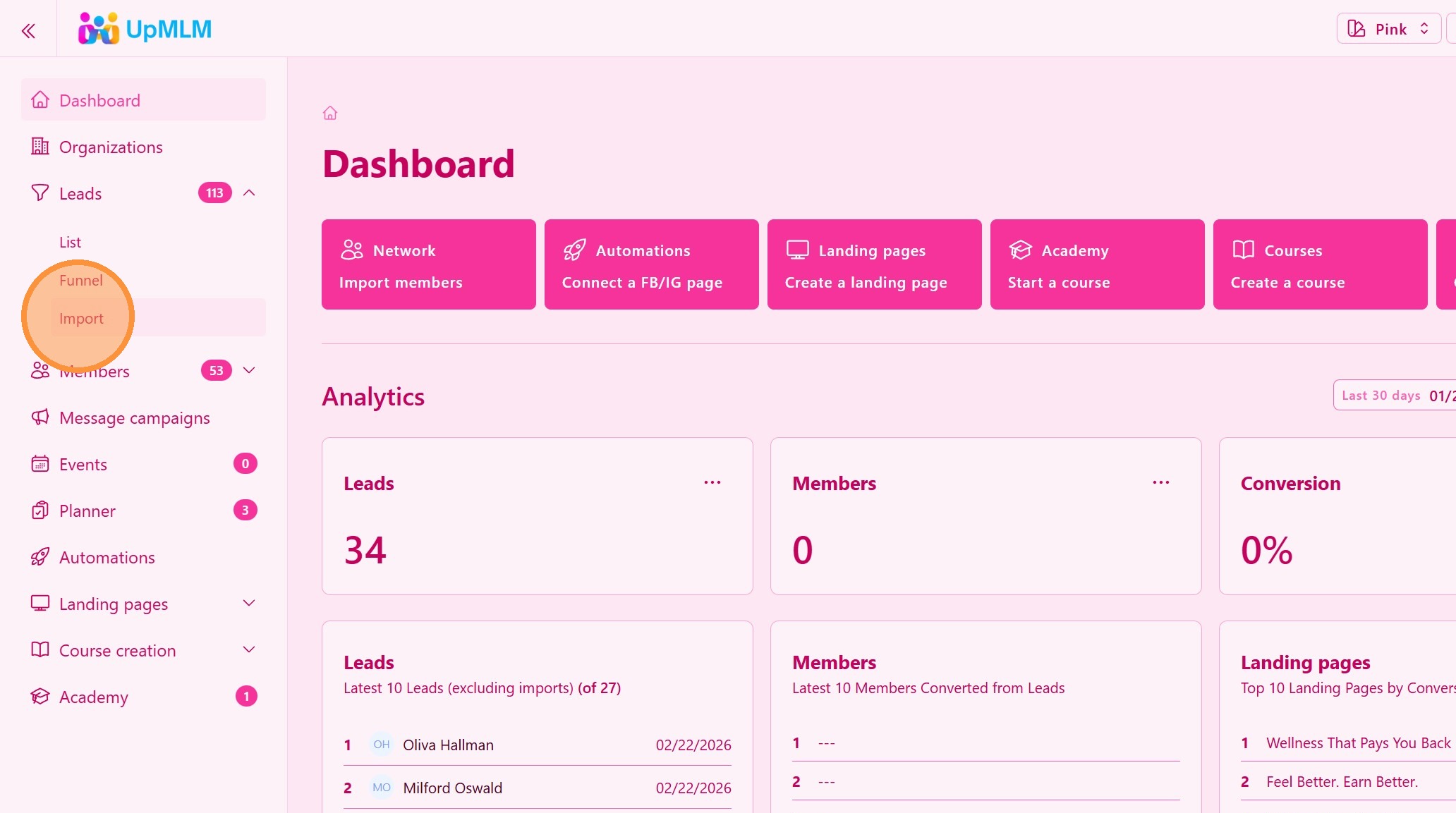 В този урок ще научите как да импортирате потенциални клиенти с UpMLM. До края на това ръководство ще можете да качвате списъци с контакти, да съпоставяте полетата правилно и да гарантирате, че вашите контакти са готови за последваща комуникация.