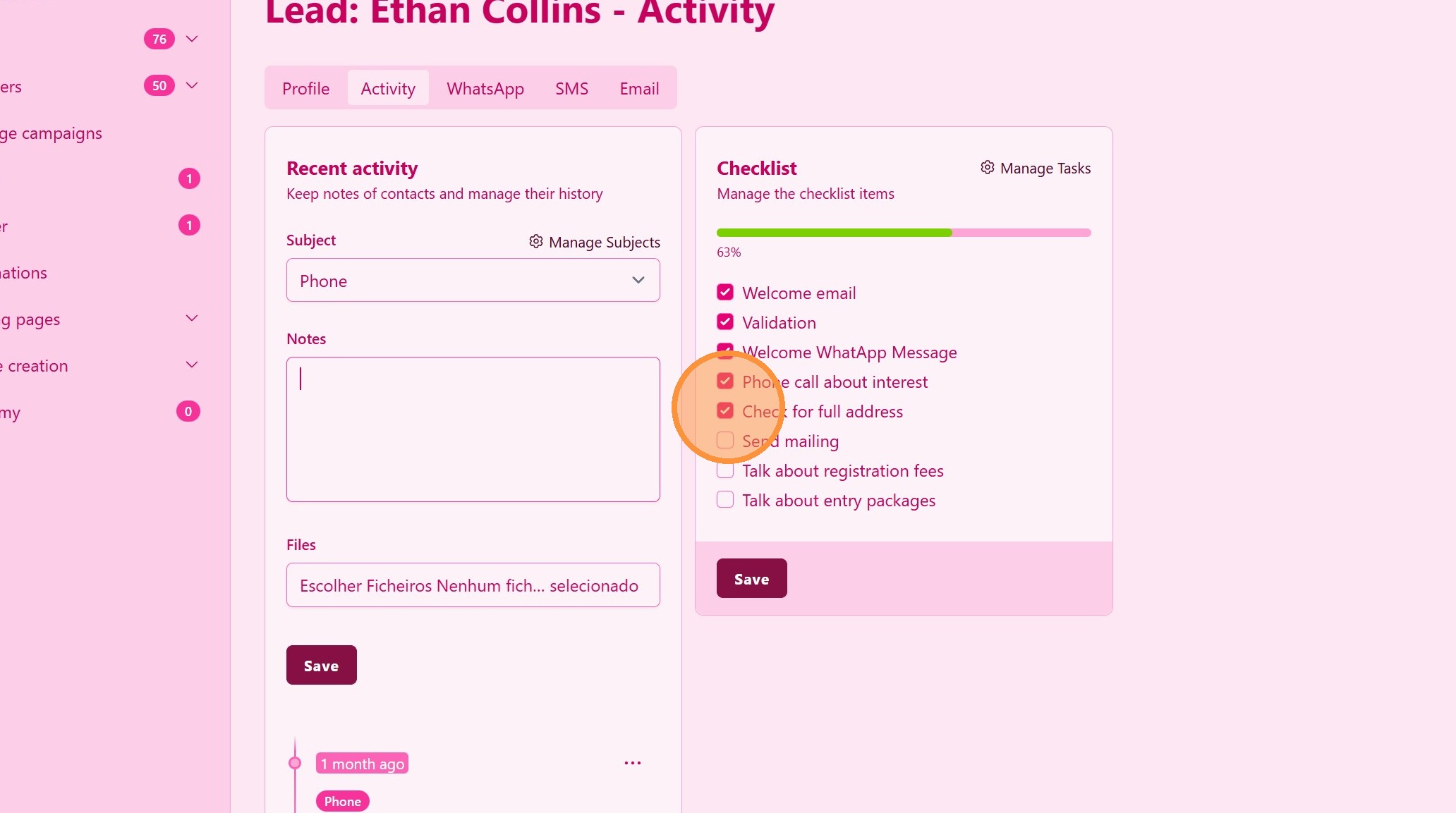 Η επικοινωνία θα καταγραφεί στο ιστορικό δραστηριότητας του προοπτικού πελάτη
