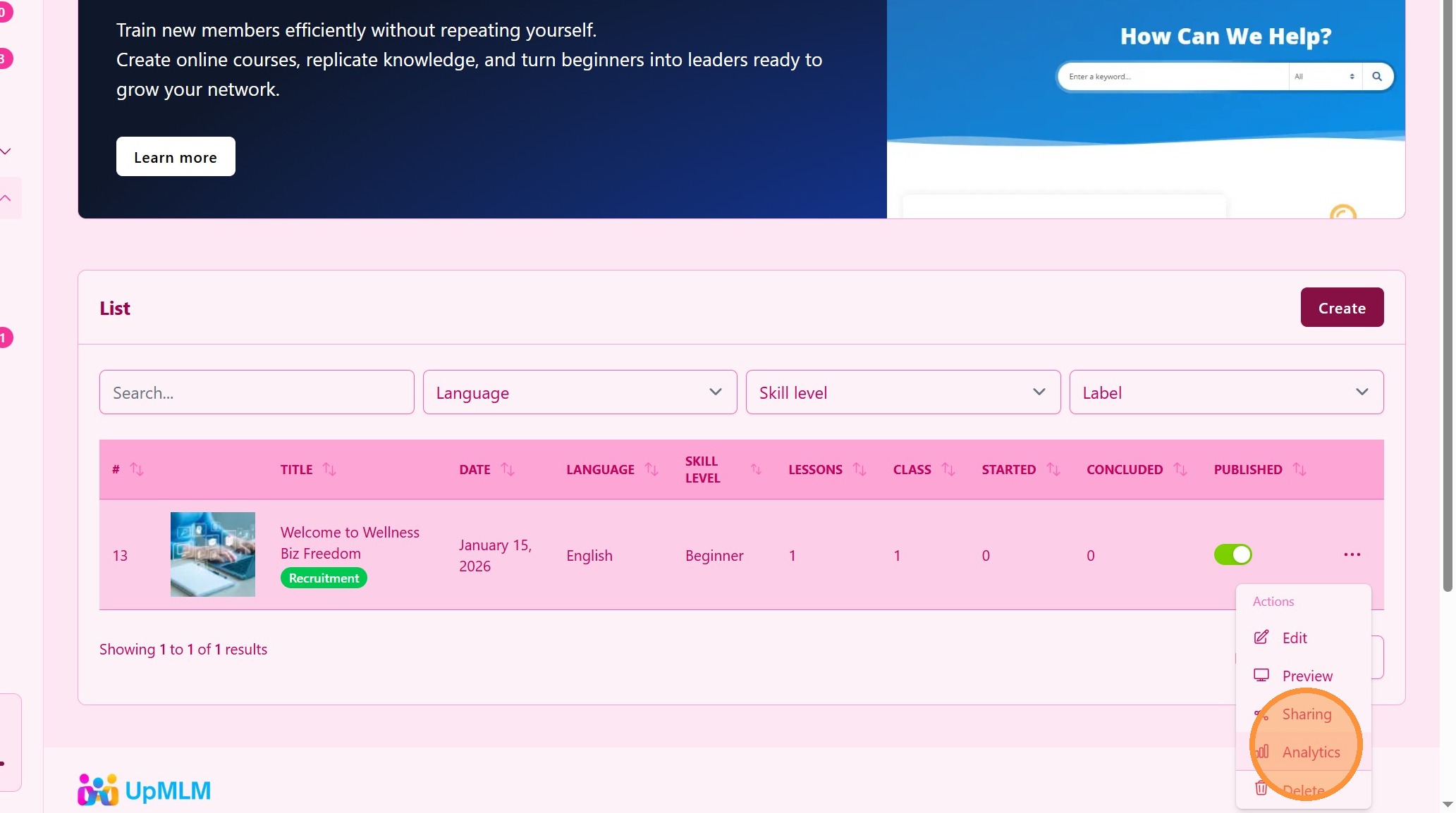 Le suivi de la progression des utilisateurs dans un cours sur UpMLM vous permet d’assurer une formation cohérente au sein de votre équipe. En surveillant les taux d’engagement et d’achèvement, vous pouvez soutenir efficacement les membres et maintenir une croissance structurée et duplicable dans votre organisation de MLM.