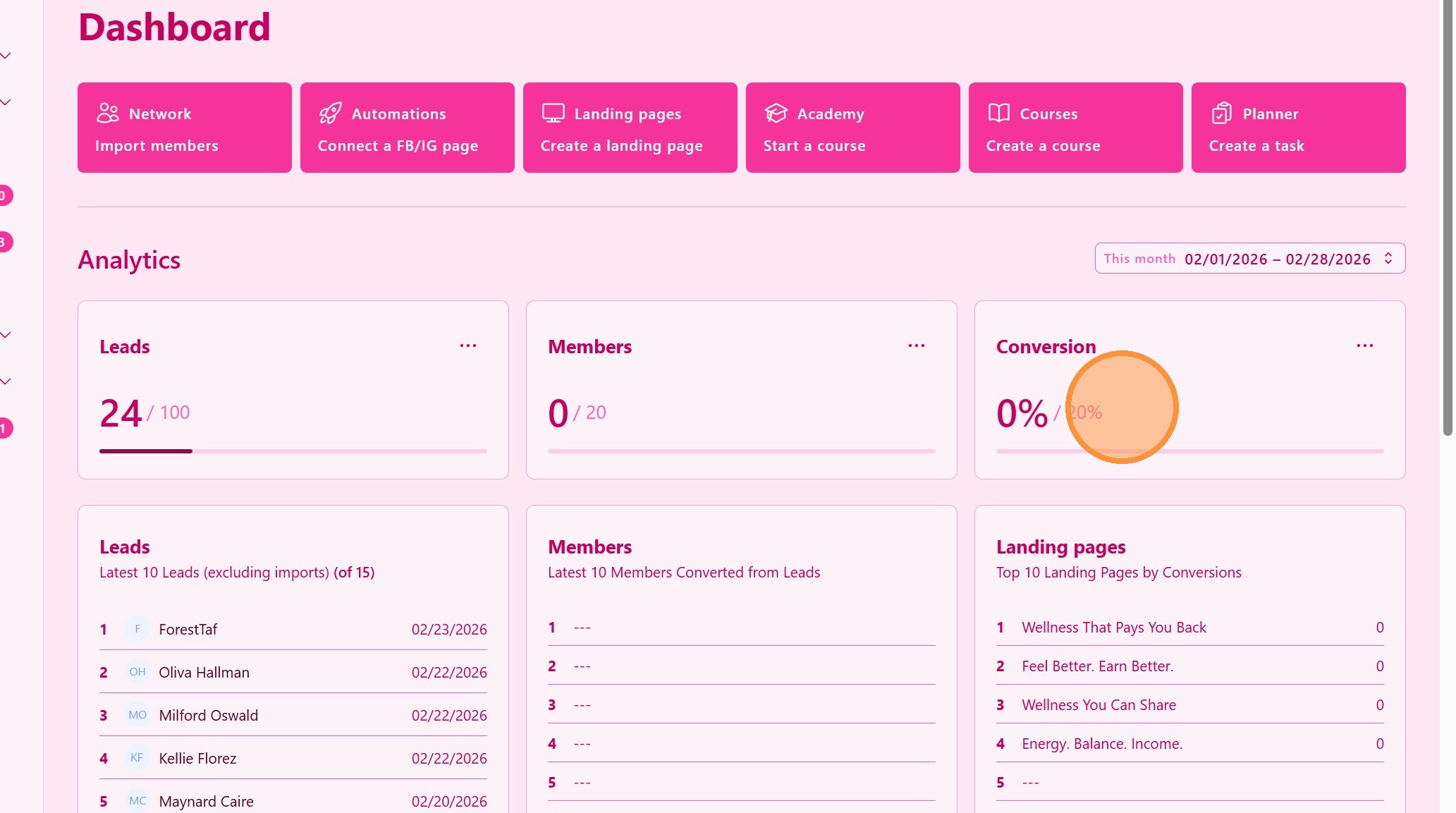 리드에서 전환된 신규 멤버에 대한 목표를 설정하세요. MLM 비즈니스 목표와 일치시키세요