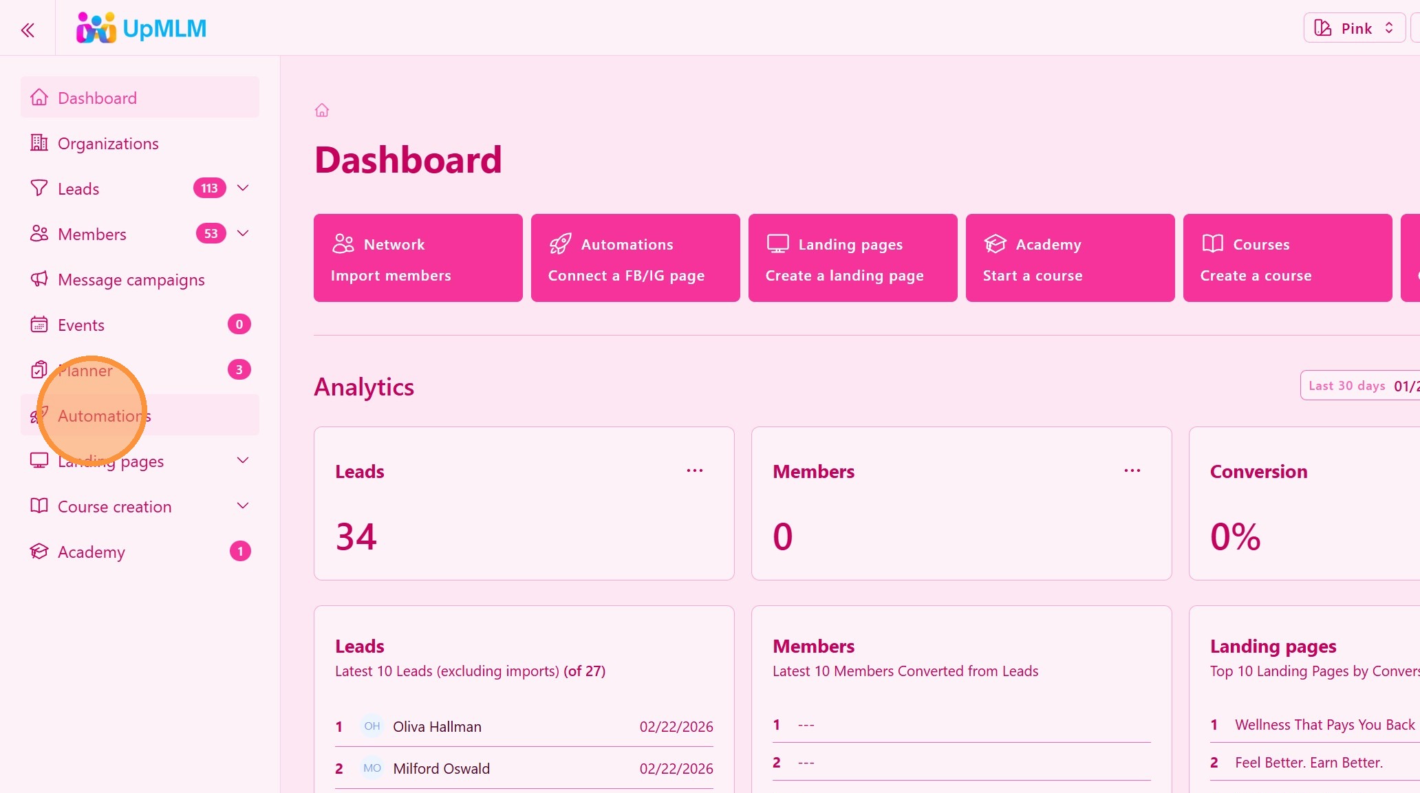 Mengautomasikan penangkapan prospek melalui Facebook, Instagram, dan halaman pendaratan dalam UpMLM menjimatkan masa dan memastikan tindakan susulan yang pantas dan konsisten. Integrasi ini membantu anda mengembangkan penjanaan prospek sambil mengekalkan proses anda teratur dan cekap.