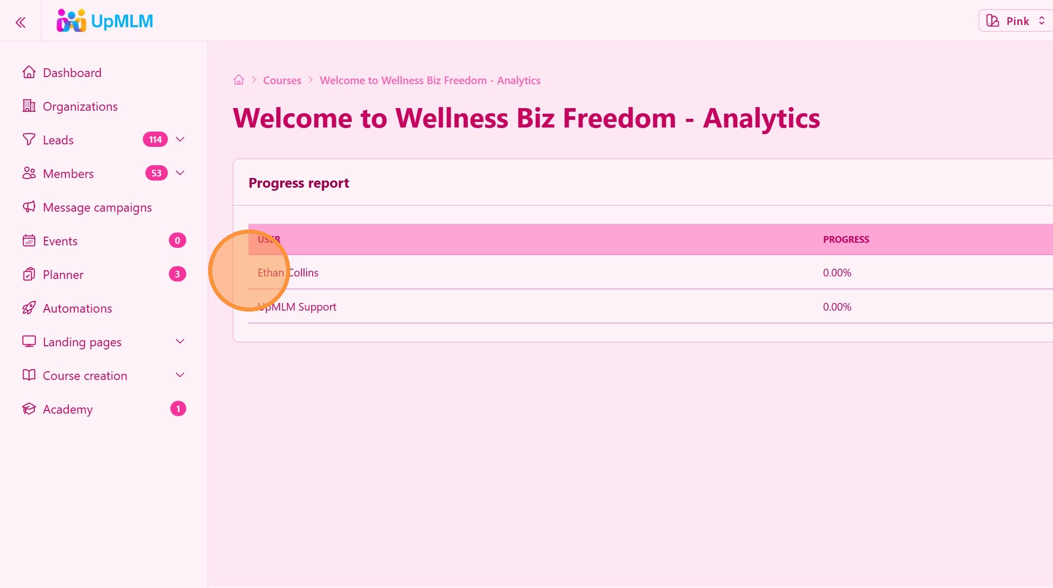 V tomto návode sa naučíte, ako sledovať pokrok používateľov v kurze na UpMLM. Na konci tohto sprievodcu budete vedieť vidieť, ktorí členovia začali kurz, pokračujú v ňom alebo ho dokončili — čo vám pomôže efektívnejšie viesť a podporovať svoj tím.