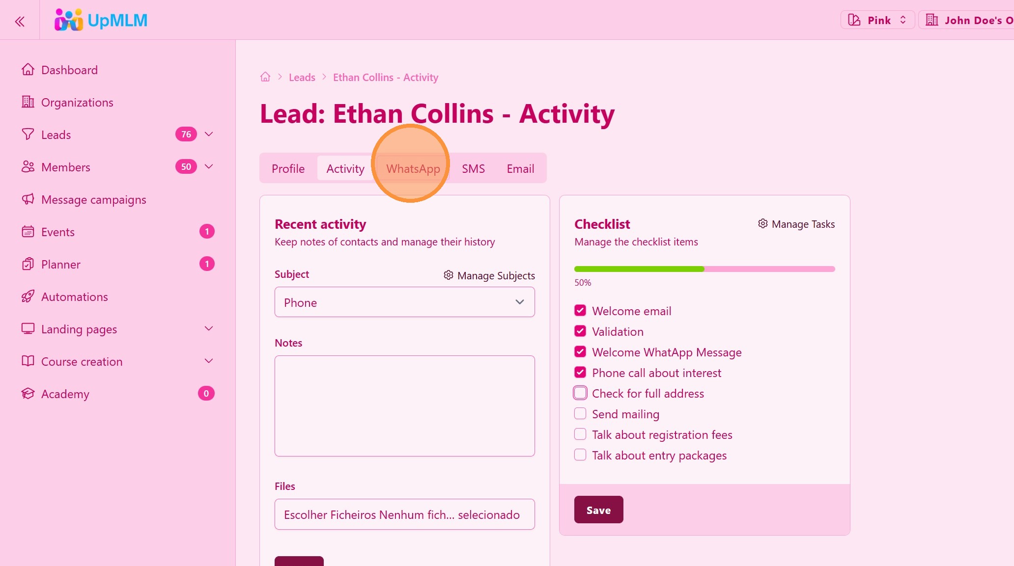 V tej vadnici se boste naučili, kako pošiljati sporočila prek WhatsApp in e-pošte potencialnim strankam v UpMLM. Do konca tega vodnika boste sposobni učinkovito komunicirati s svojimi potencialnimi strankami in vse pogovore organizirati na enem mestu.