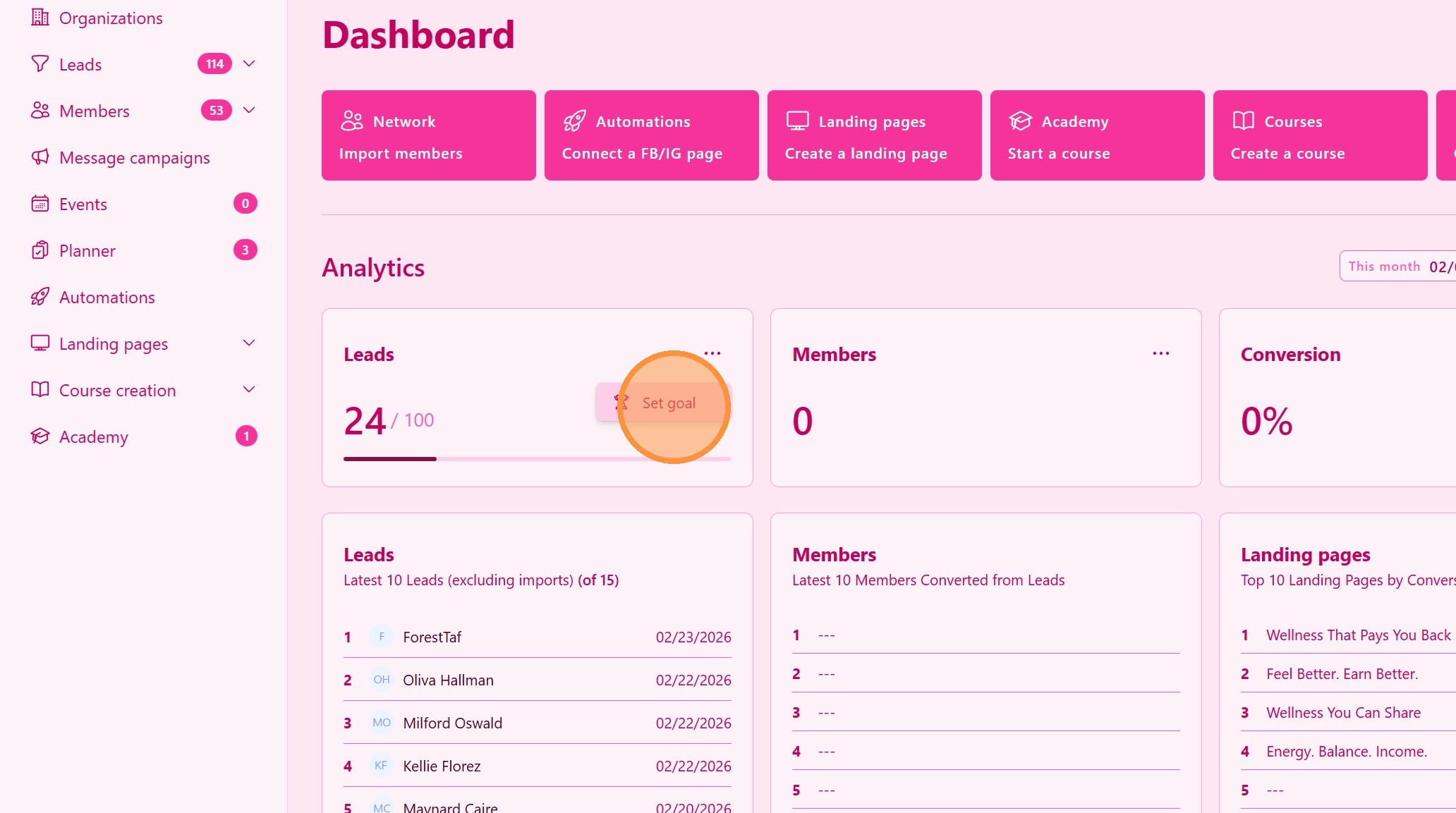 Nastavite cilj za nove člane, pretvorjene iz potencialnih strank. Uskladite ga s cilji vašega MLM podjetja