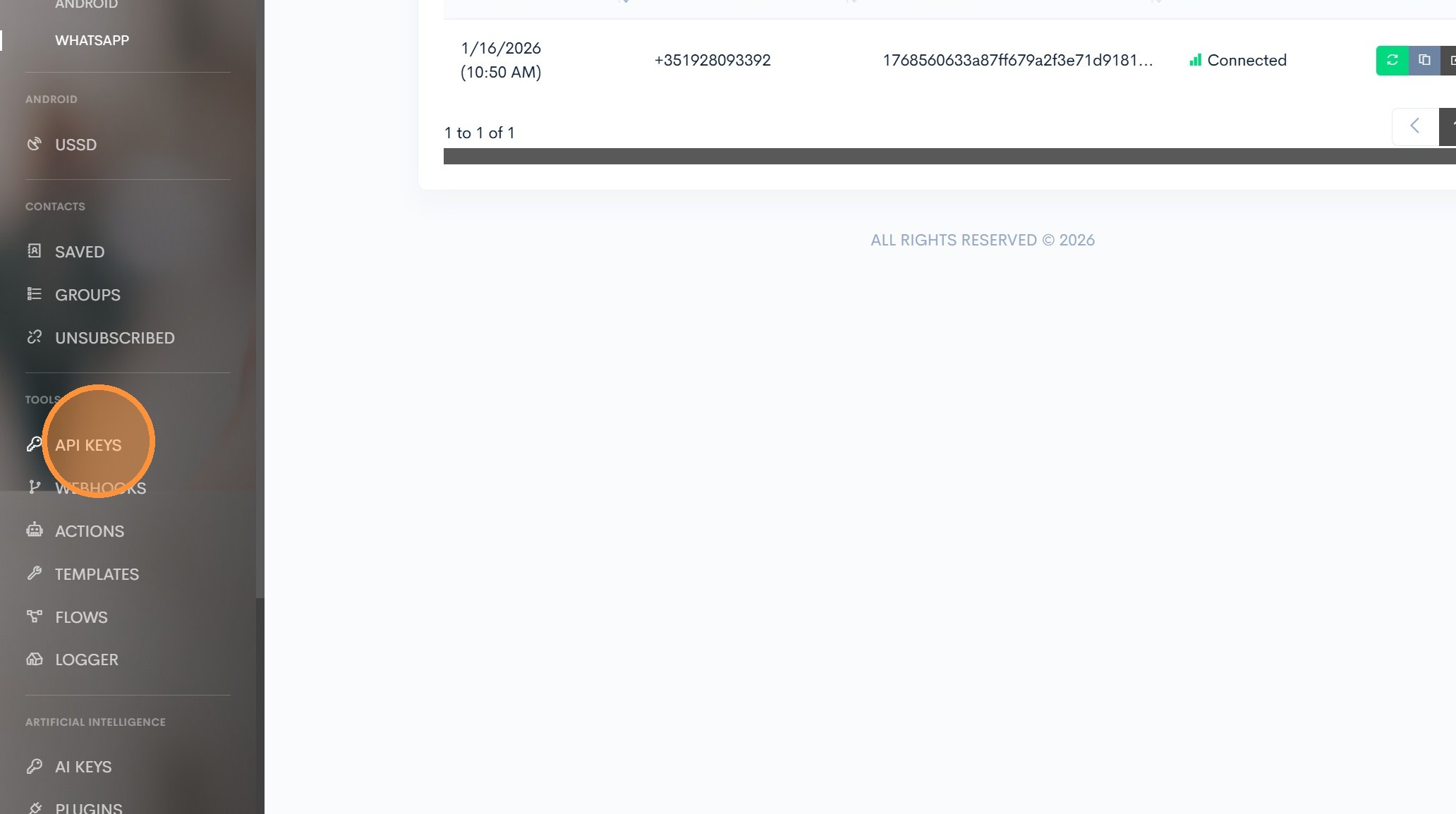 WhatsApp/SMS Bağla‘ya tıklayın.
