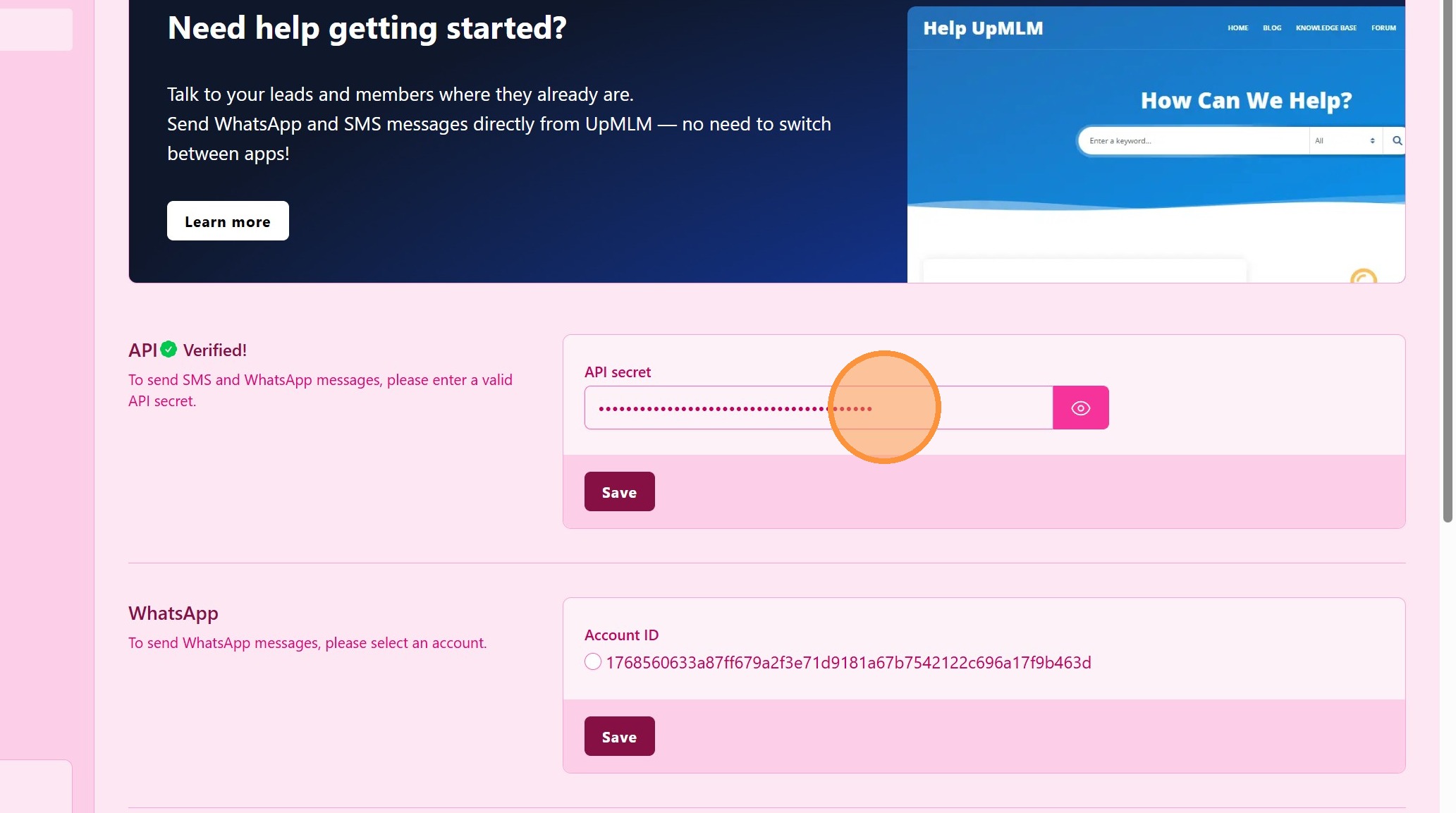 Поверніться до UpMLM, вставте секретний API-ключ і натисніть Зберегти.