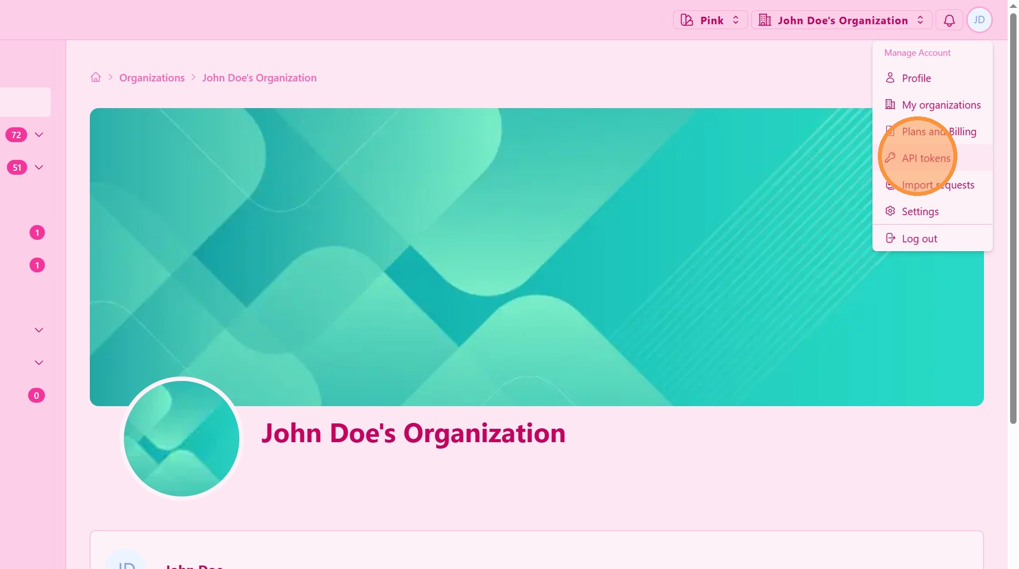 From the personal navigation menu, click on API tokens.