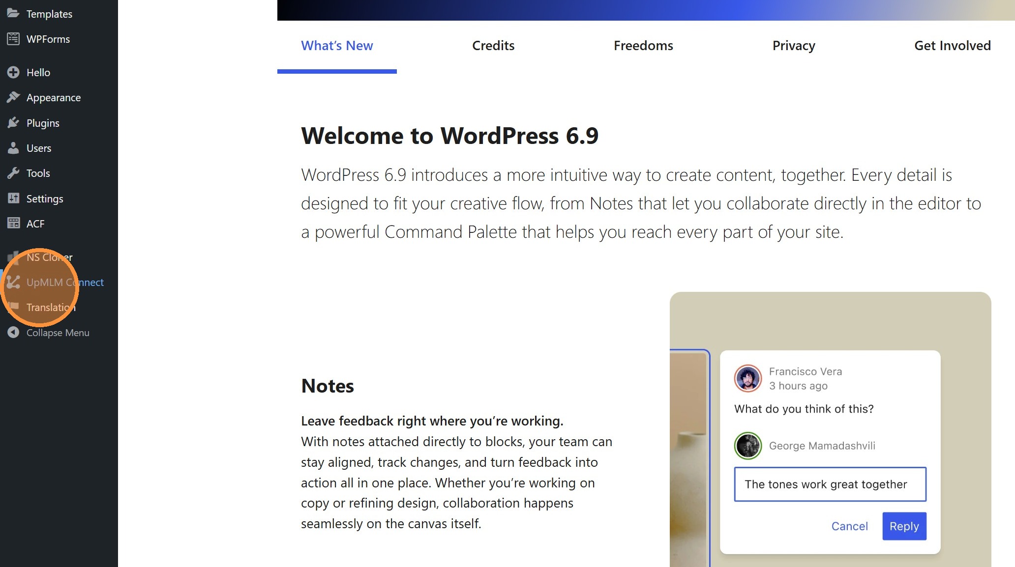 Go to your WordPress and click "UpMLM Connect"